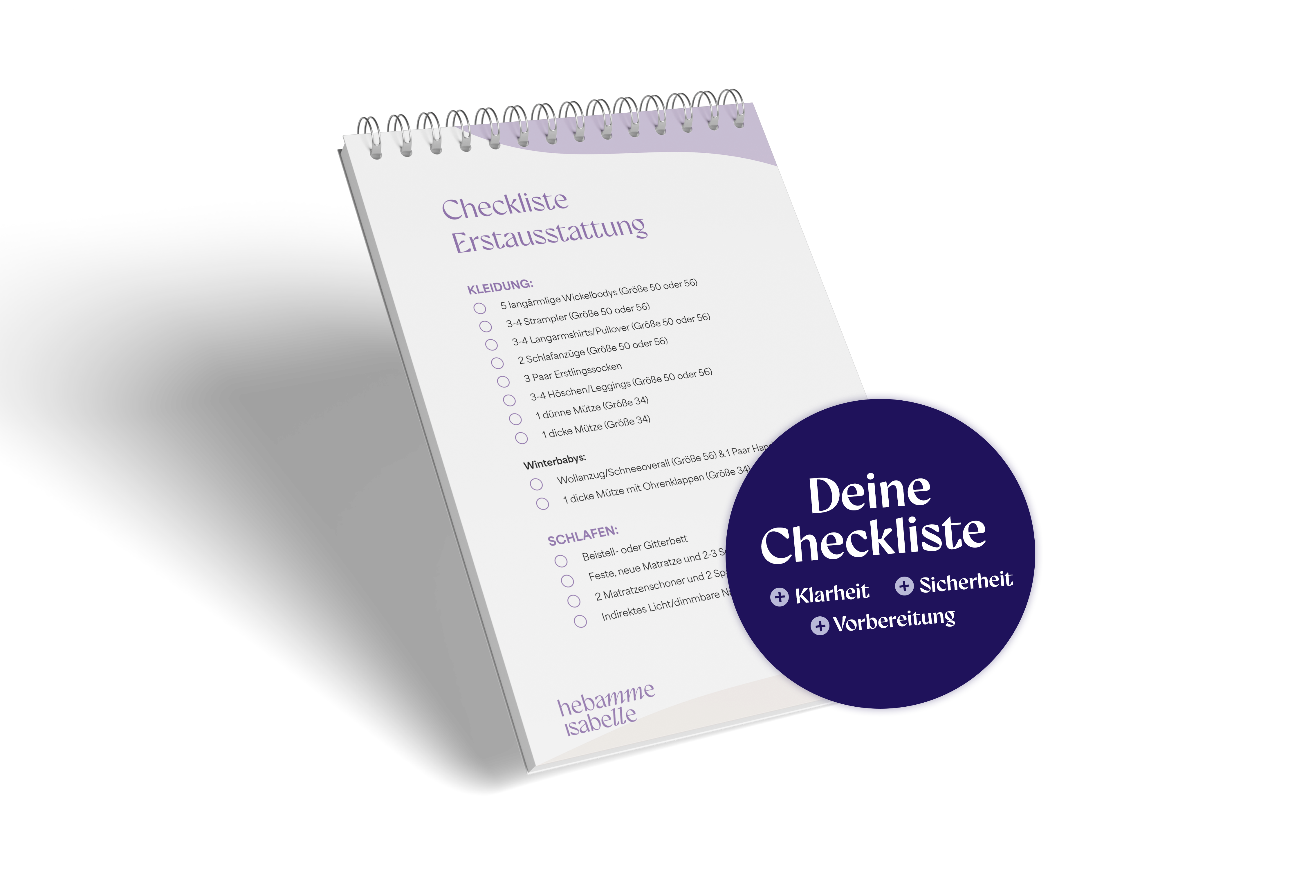 Hol dir die Checkliste von Hebamme Isabelle – mit allem, was du wirklich brauchst (und ohne unnötige Extras).