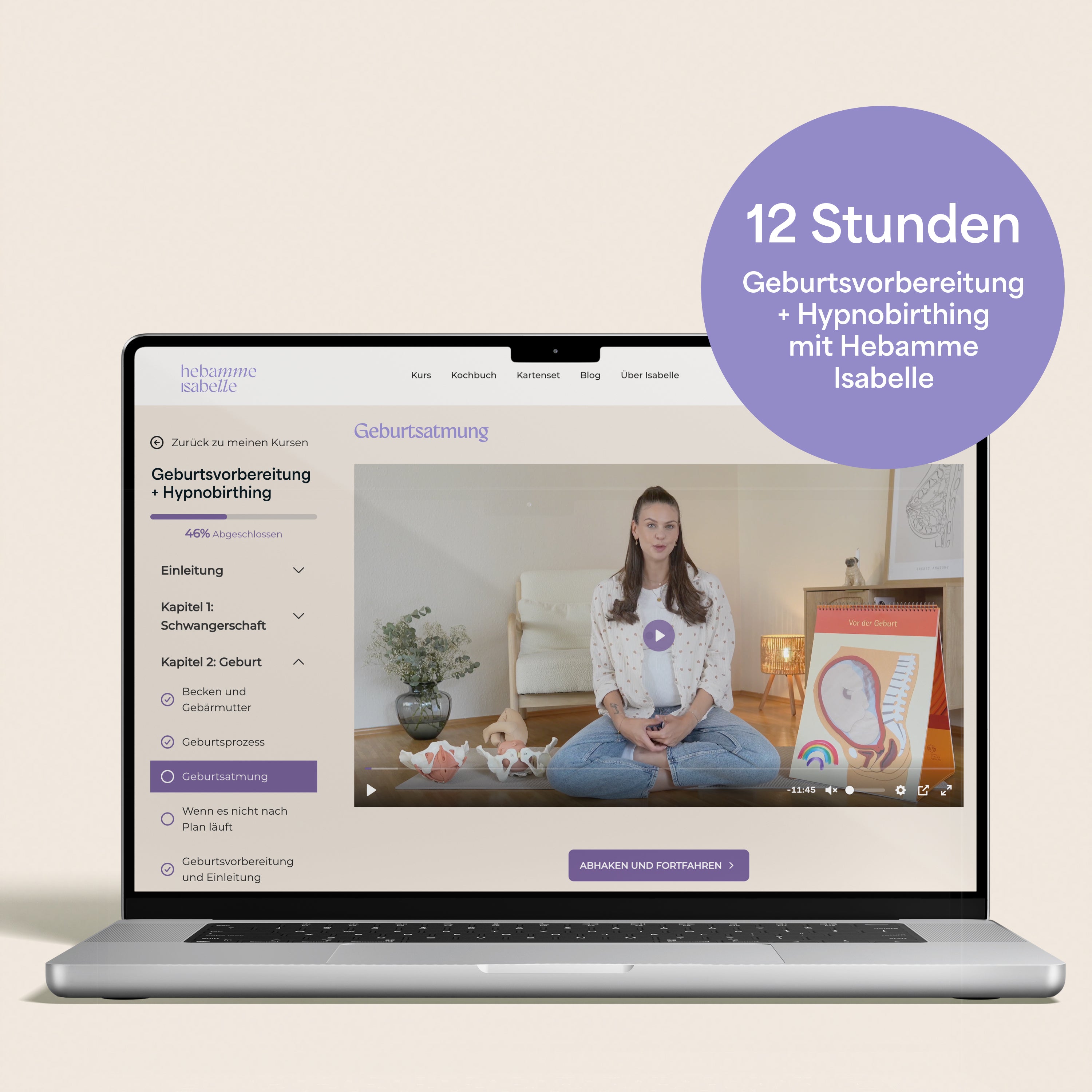 Jeder Kurs setzt eigene Schwerpunkte. In meinem Kurs findest du unter anderem das Kapitel Hypnobirthing, in dem du Atemtechniken und geführte Hypnosen kennenlernst, die dich zusätzlich stärken.